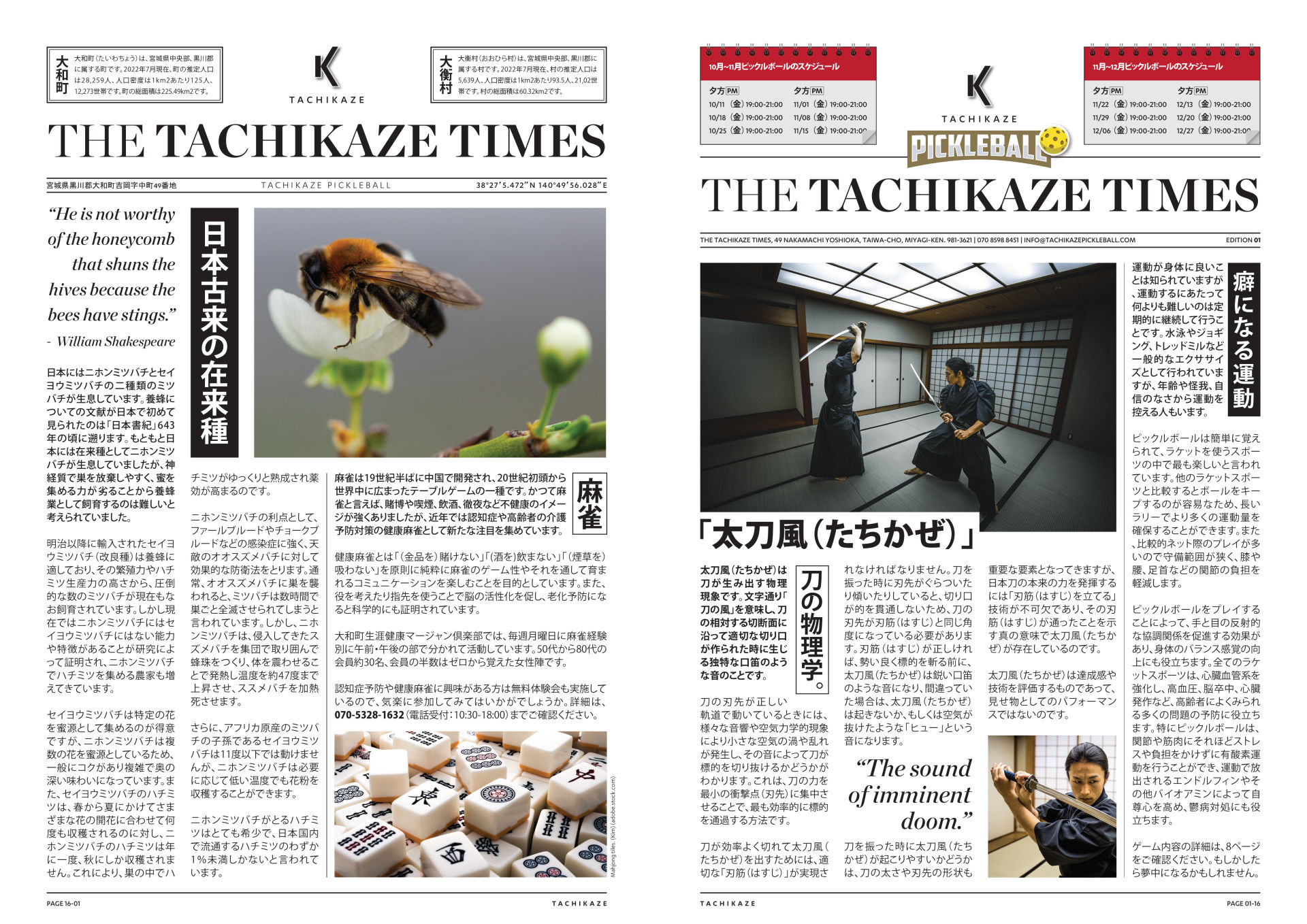 タチカゼピックルボールは、スポーツの普及に力を入れ、あらゆる年齢層のプレーヤーがアクティブに活動し、人脈を築きながらバイリンガル環境で楽しむ機会を提供しています。また、地域社会に焦点をあてた新聞も発行しており、教育的かつ娯楽的な内容を織り交ぜながら、スポーツと社会的交流を促進しています。定期的な特集にはピックルボールのルールも含まれており、読者がゲームへの理解を深める手助けをしています。
